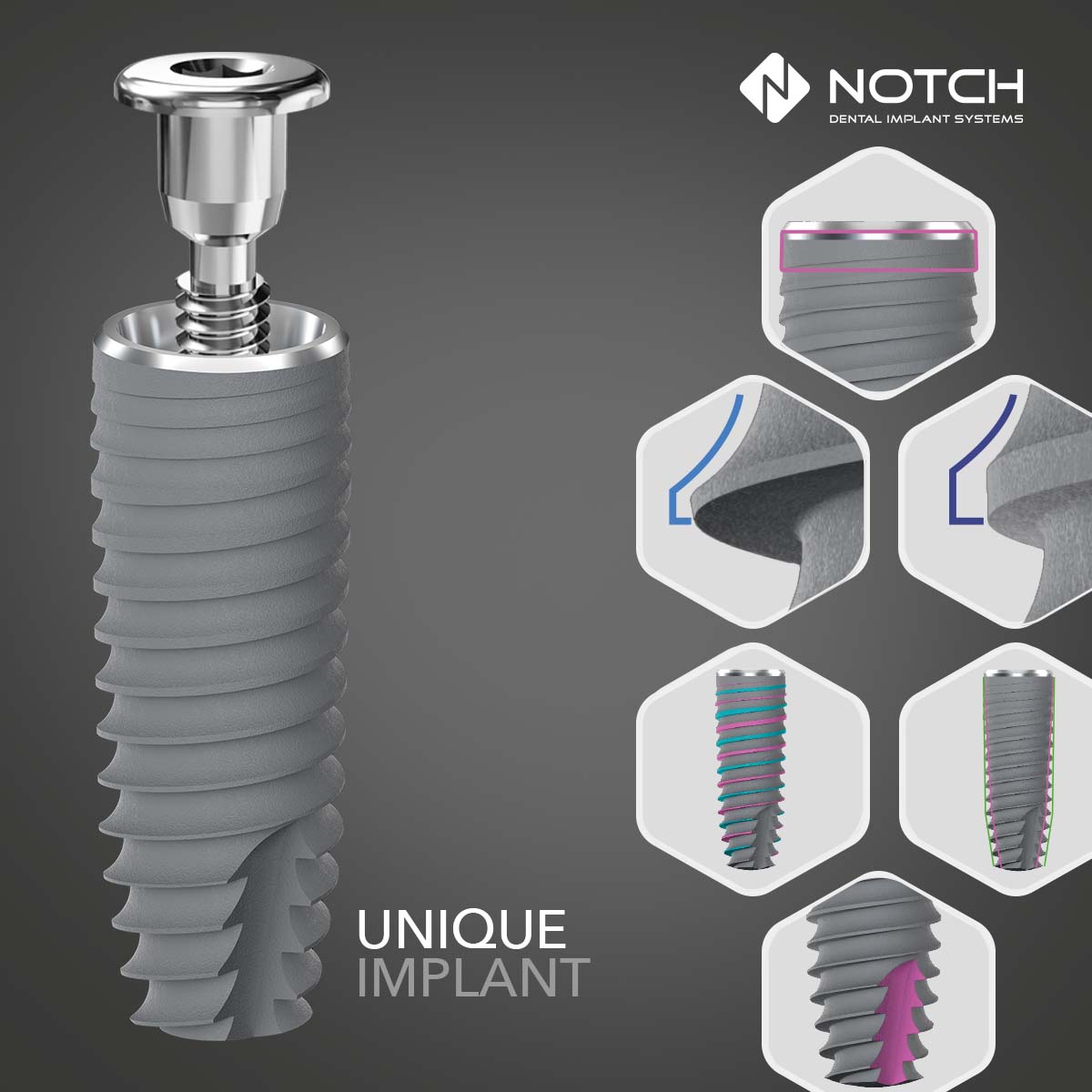 In order to facilitate your implant applications, all NOTCH products are designed according to the “One-4-All” concept to make the workflow easier for surgical and prosthetic phase and a smaller room for your product stock.